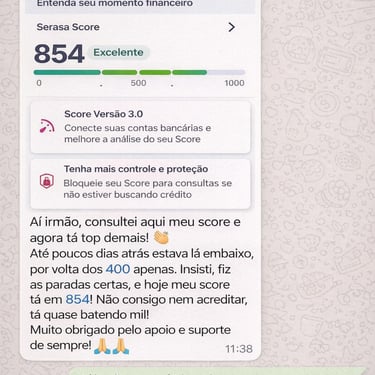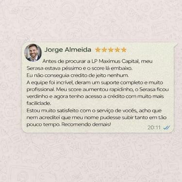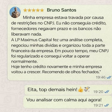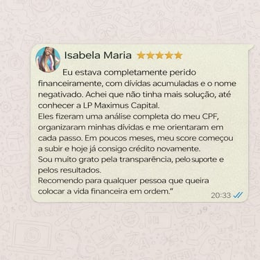 Já ajudamos mais de 7.000 clientes, entre pessoas físicas e jurídicas, a recuperarem seu crédito no mercado. Através de uma análise completa do CPF e CNPJ, identificamos pendências e desenvolvemos estratégias para regularização de dívidas e limpeza do nome. Nosso objetivo é devolver o acesso ao crédito e proporcionar mais estabilidade financeira para nossos clientes..